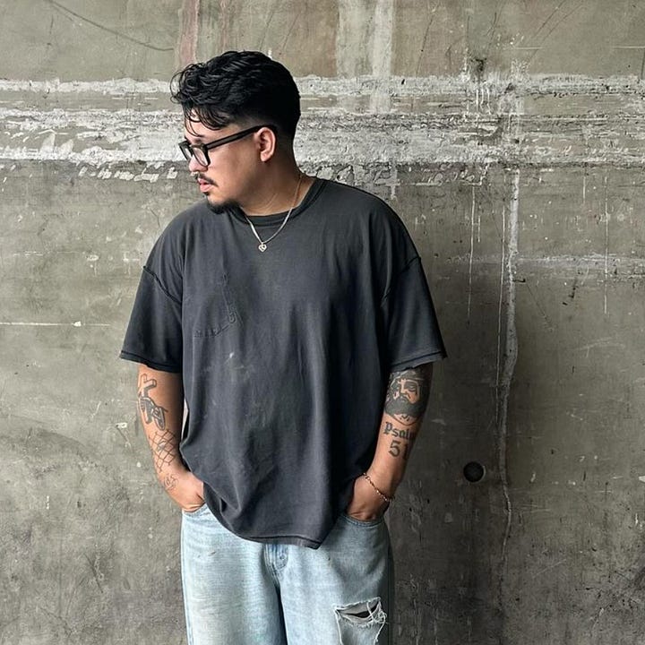 I think style is important on a few separate levels, first being the obvious which is self expression and individuality…especially in this day and age where everyone is a carbon copy of TikTok’s latest micro trend, style is what sets you apart…but it’s so much more then the clothes, it’s the way you walk, the way you conduct yourself, the energy you evoke, it’s all in the subtle nuances. Then you have the cultural aspect, which is very important to me being that I grew up on the border of Mexico in a small farming town…there’s so much influence from the Chicano silhouettes, which includes Pendleton board shirts, dickies, Levi’s 501s that are 2-3 sizes big, white tees and Stetson hats. To the western apparel, the cowboy boots, distressed workwear, and Pearl snap button downs. Style is a beautiful way to tell your story and do it in a way that lets the world know YOU’RE in the room.